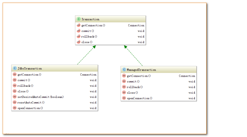 JdbcTransaction直接使用JDBC的提交和回滚事务管理机制。它依赖于从dataSource中取得的连接对象connection 来管理transaction的作用域,connection对象的获取被延迟到调用getConnection()方法。如果autocommit设置为on (开启状态),它会忽略commit和rollback。即JdbcTransaction使用java.sql.Connection 上的commit和rollback功能,JdbcTransaction相当于对java.sql.Connection事务处理进行了一次包装(wrapper),Transaction的事务管理都是通过java.sql.Connection实现的。