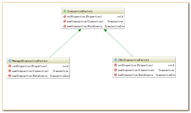 与JDBC 和MANAGED两种Transaction相对应,TransactionFactory有两个对应的实现的子类: