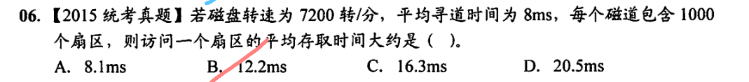 \(存取时间=寻道时间+延迟时间+传输时间=12.18\mathrm{~ms}\approx12.2\mathrm{~ms}\)
