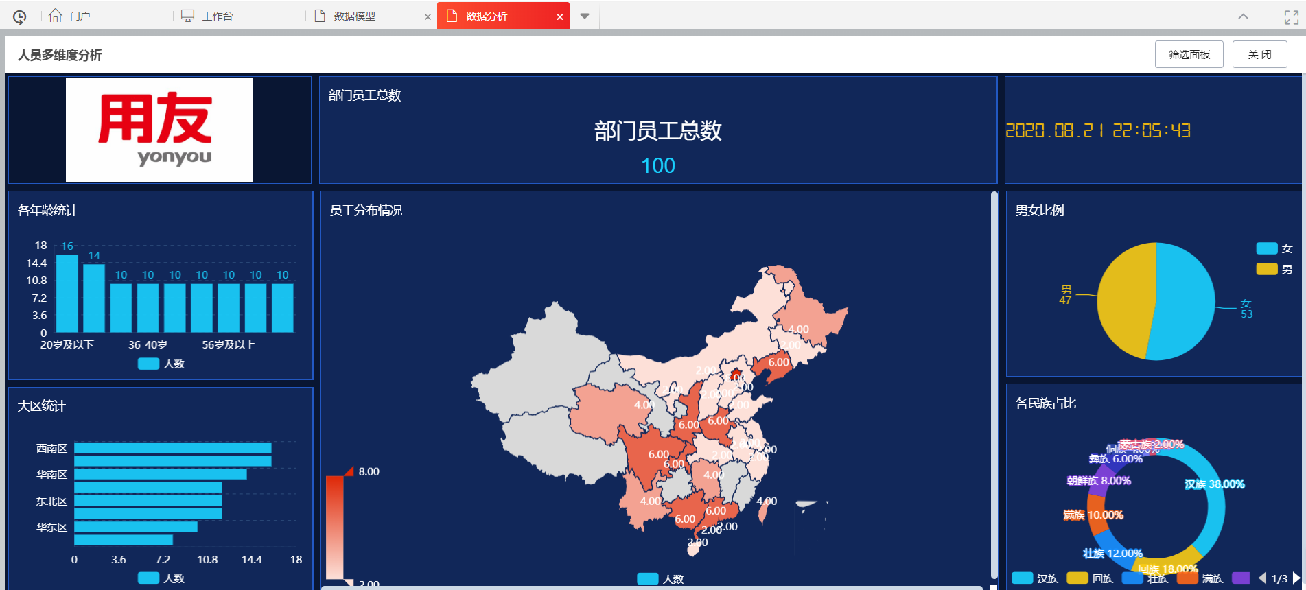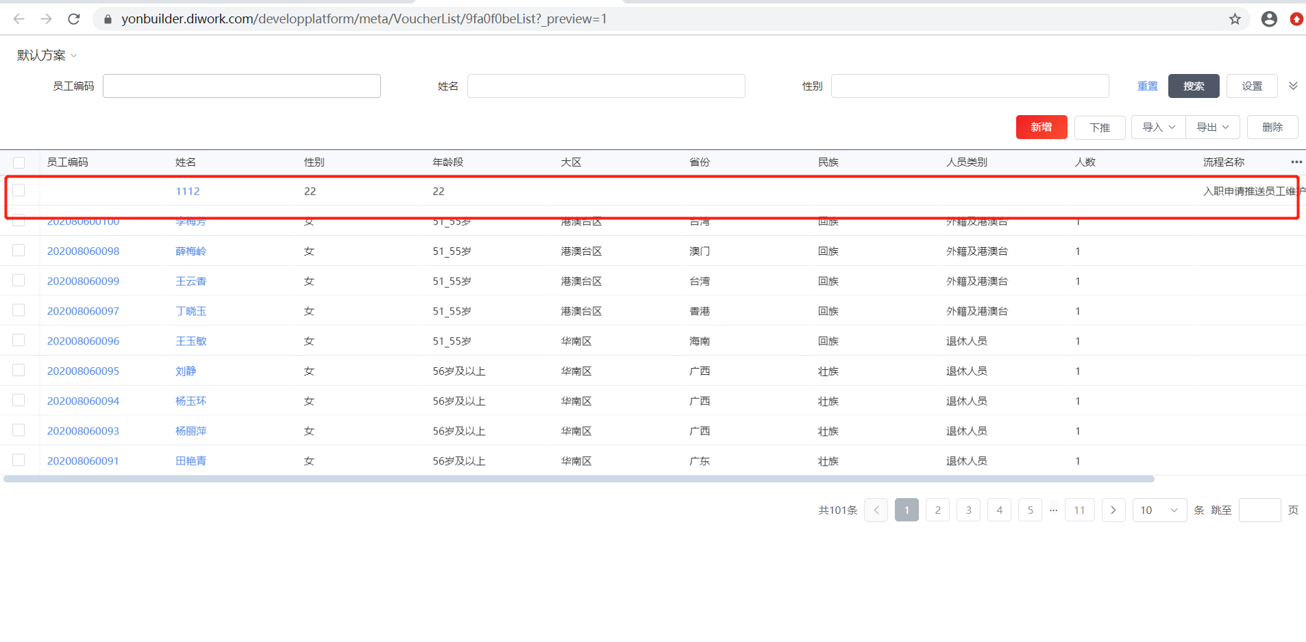 该公司意识到这种粗放的管理手段不利于企业未来的发展,想要将原来由手工处理的人员入职审批、人员录入工作转移到系统中处理;需要实现人员信息的自动收集工作,入职人员提交入职申请,通过审批流进行审批,入职审批通过后将信息自动录入到人员管理中;在人员管理中实现对人员信息的增删改查;实现对部门内员工的一个多维度分析报表展示。但公司内部并没有太多富余的代码开发力量,此时,低代码开发平台Y o n B u i l d e r 进入了这家公司的视野。