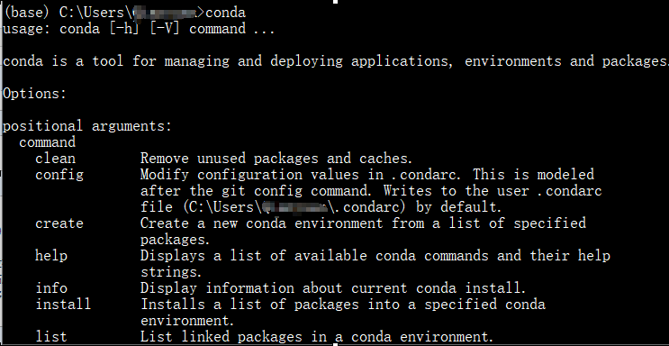 (4)输入conda显示如下信息则无误: