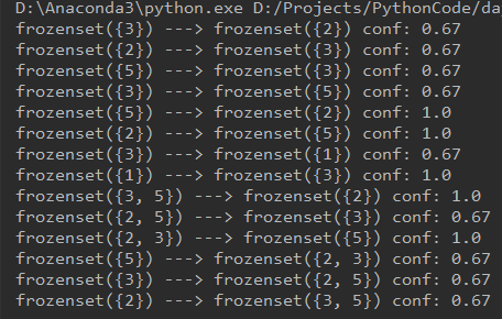 print(freqSet - conseq, '--->', conseq, 'conf:', round(conf, 2))