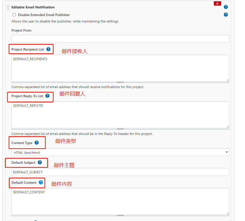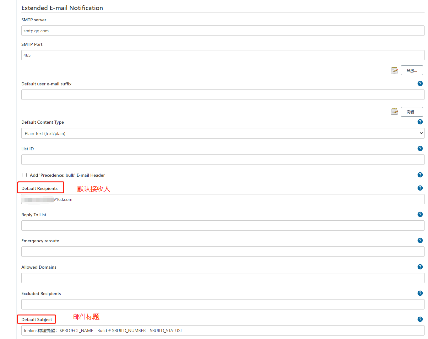 jenkins模板配置,在Extended E-mail Notification下,Default Content中配置发送邮件的内容