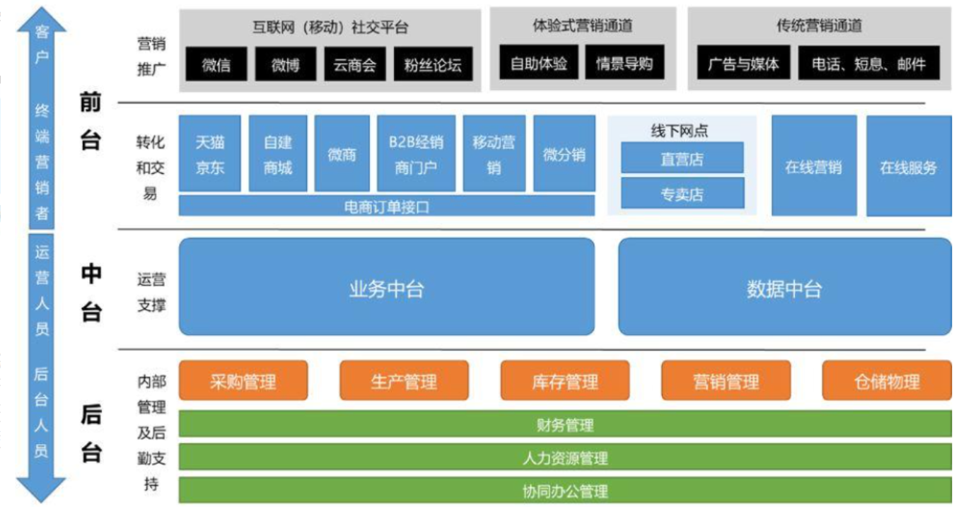 中台概念出现之前,在信息化模式上,前端为支撑业务的应用端,后端为各个应用系统,为前端用户,如:客户、供应商、伙伴、社会,提供服务,但随着市场、用户需求、业务的多变性,底层僵硬的应用无法及时提供支撑。