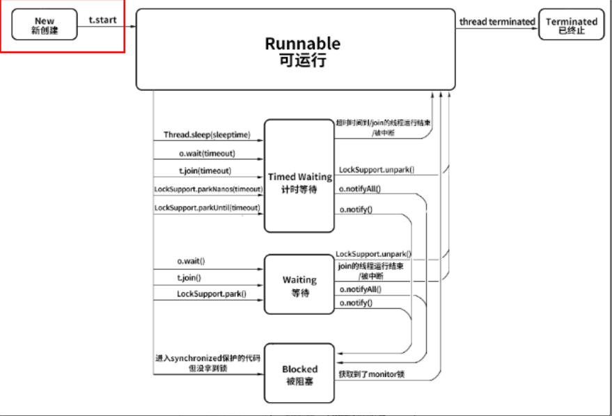 - 新建(New):创建后尚未启动的线程处于这种状态