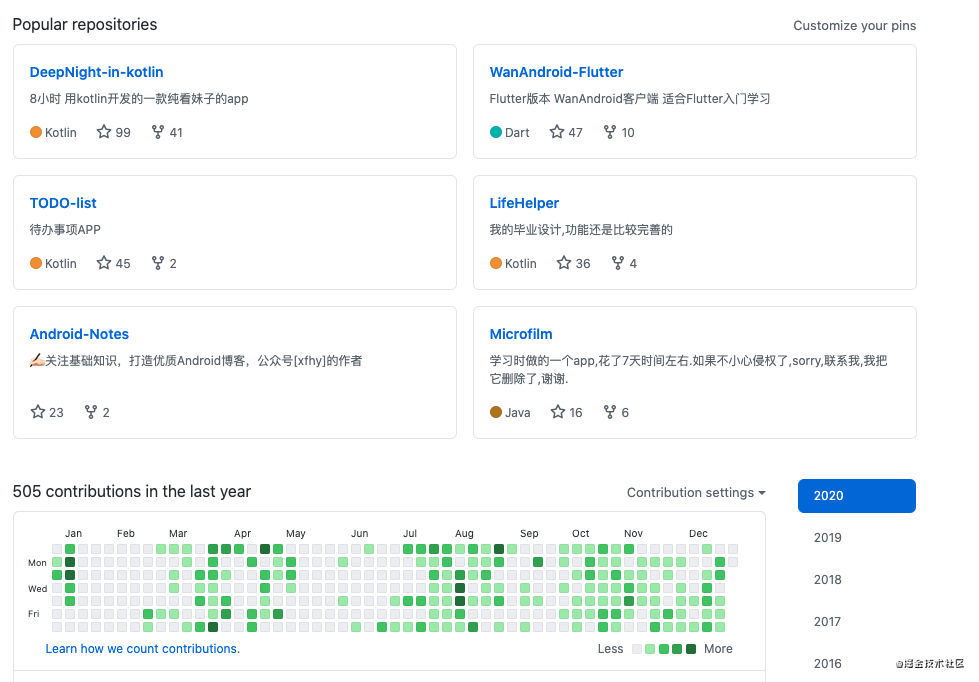 - 看了下,今年GitHub 居然提交了500多次,应该是有史以来最多的一次了
