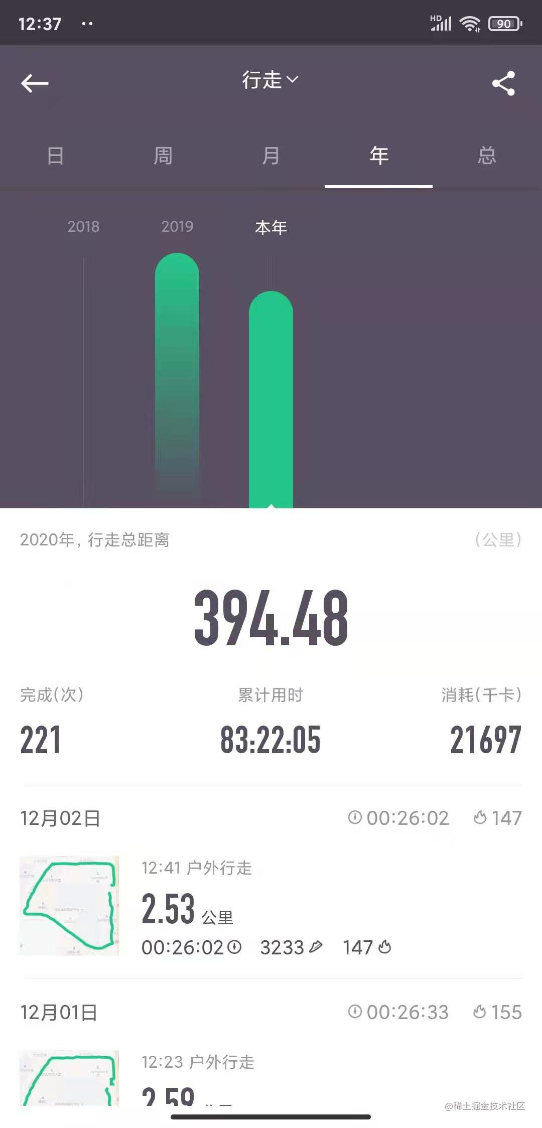 其实还有1个曾经的好习惯被我阉割了,2019年的时候我是经常跑步的.到了2020,因为疫情原因(其实是懒)没有去跑过一次步.keep上最后一次跑步还停留在去年11月.