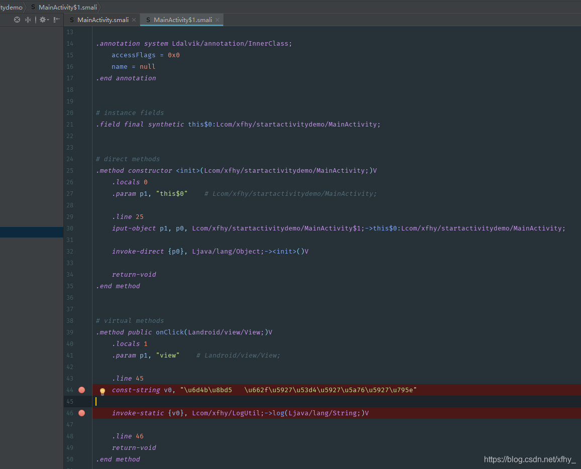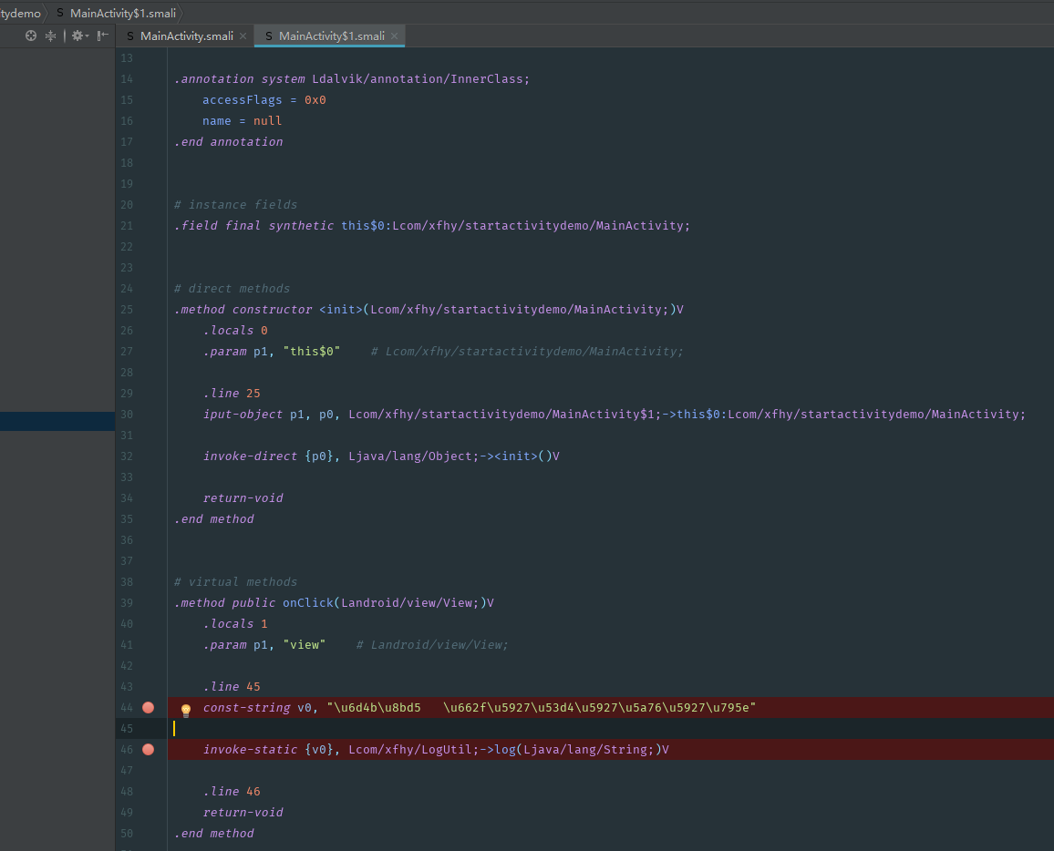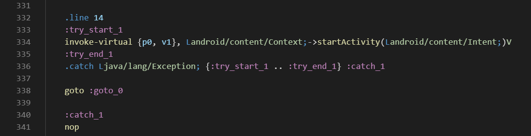 它所对应的smali代码如下: