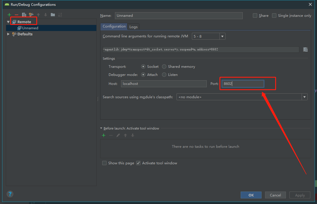 查看该App对应的端口是多少,记录下来.重新打开Android Studio,编辑Edit Configurations,点击Add New Configuration,添加之后再修改一下端口号就行,这里的端口号填上面Monitor看到的那个端口号.