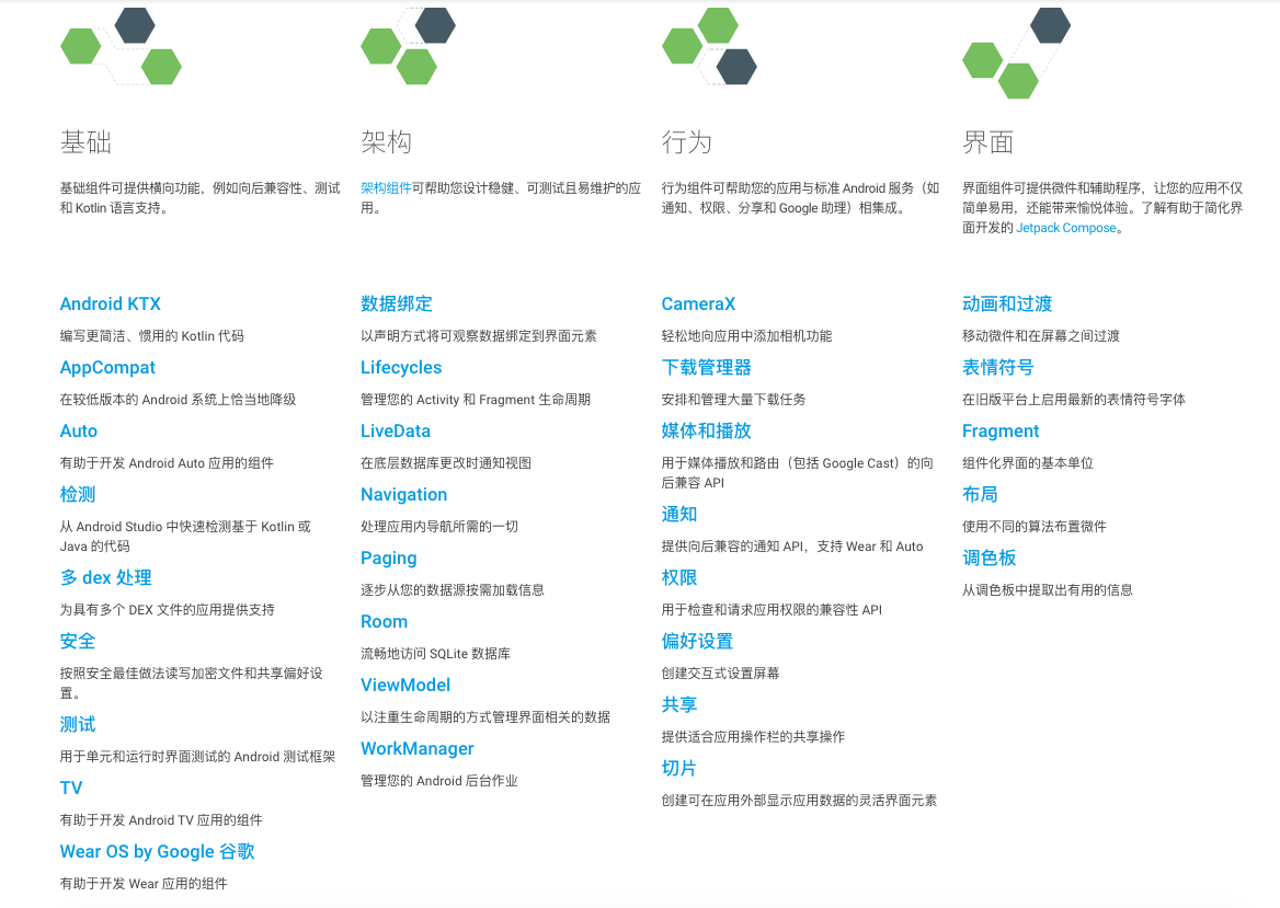 Jetpack是一个开发者组件工具集,主要目的是帮助我们写出更加简洁的代码,简化开发过程.Jetpack中的组件,大部分不依赖任何Android系统版本,这些组件通常定义在AndroidX库中,并且拥有非常好的向下兼容性.