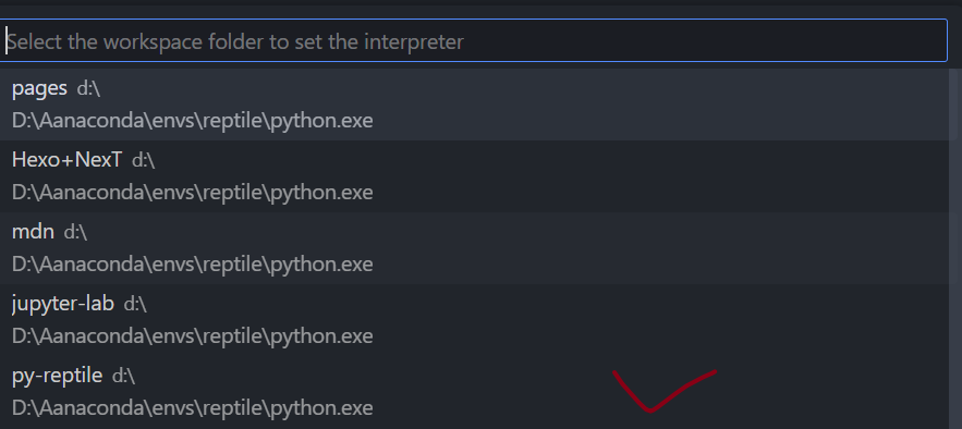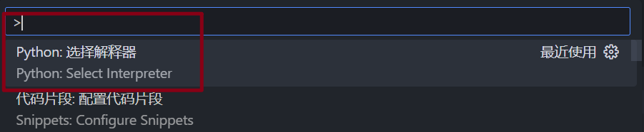 ctrl+shift+p或在输入框输入 > ; 选择 python解释器。
