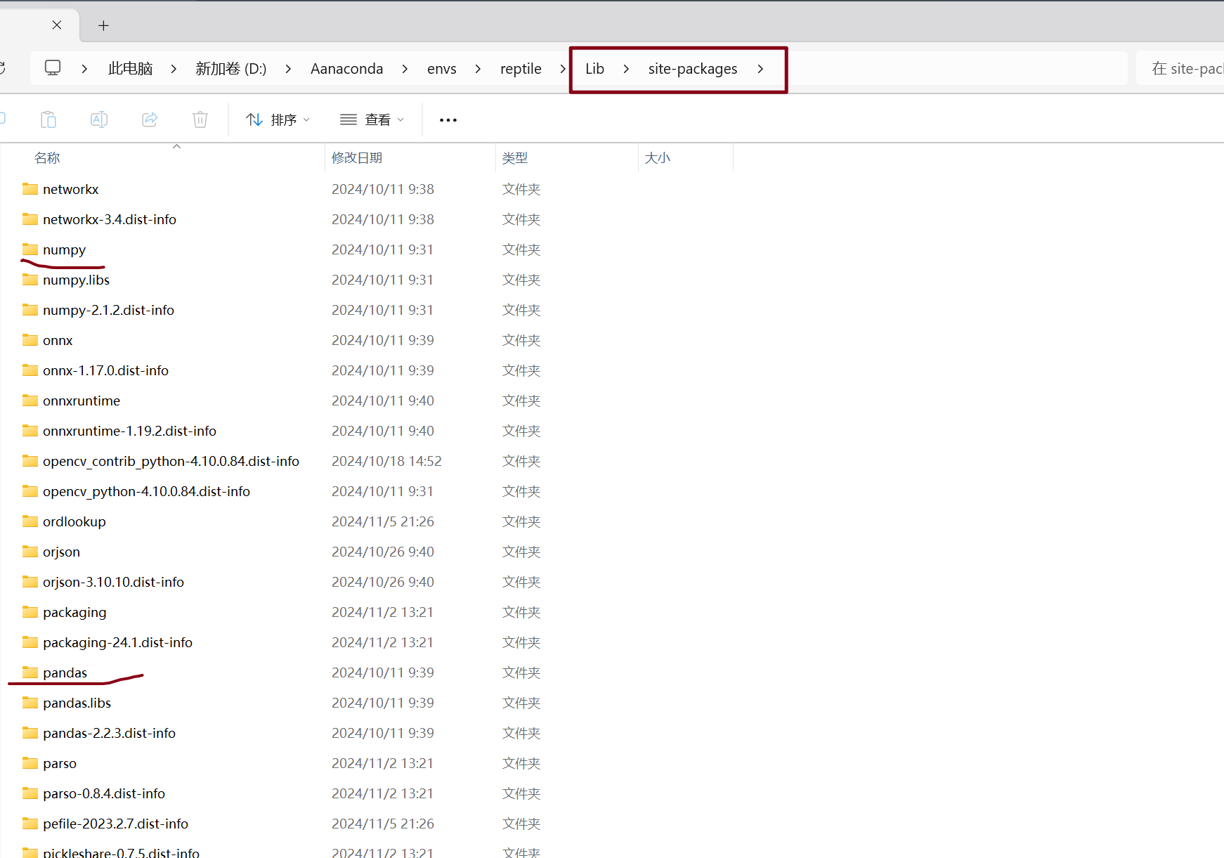 进入其中一个环境的目录在 \Lib\site-packages\ 下,是我们下载的库。