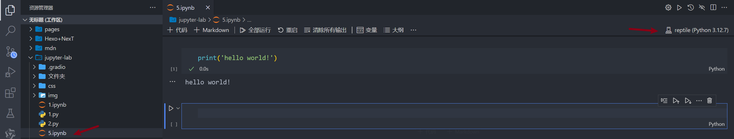 用Vscode直接将一个文件夹添加到工作区,新建 .ipynb 文件
