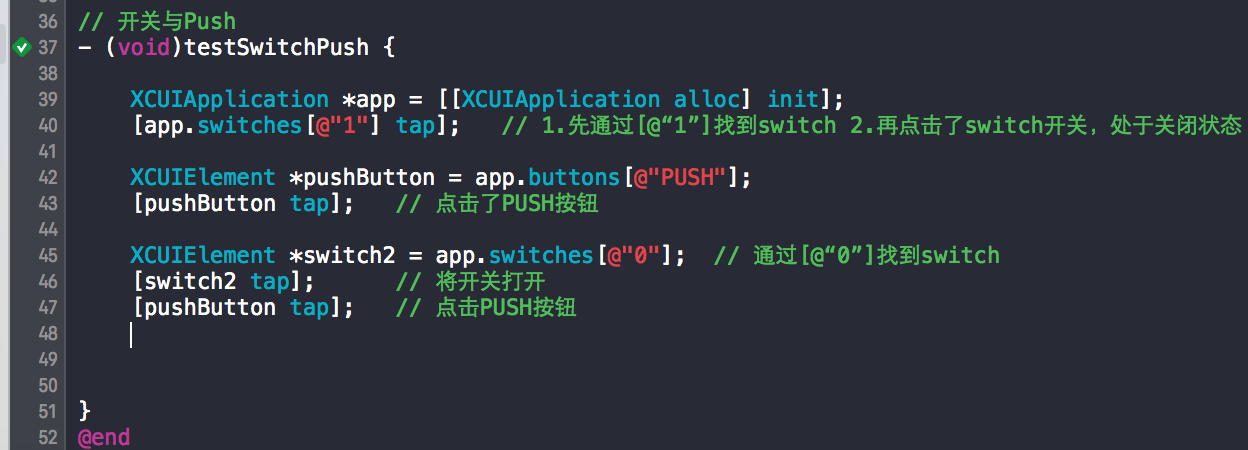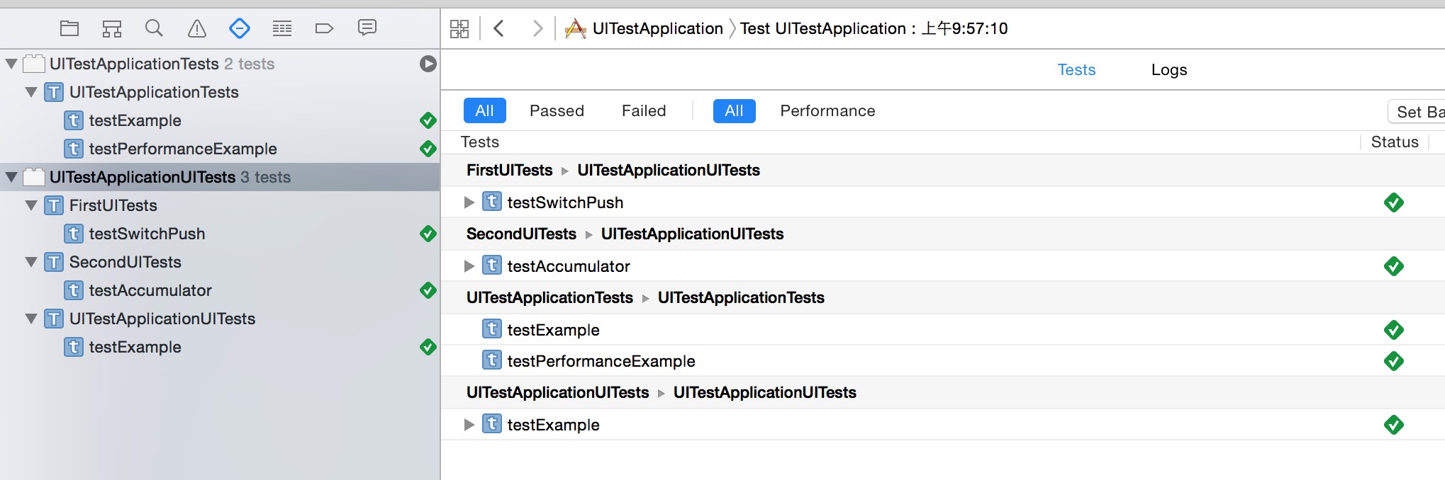 调用测试的方法与单元测试一致(详见上一篇文章"iOS单元测试")