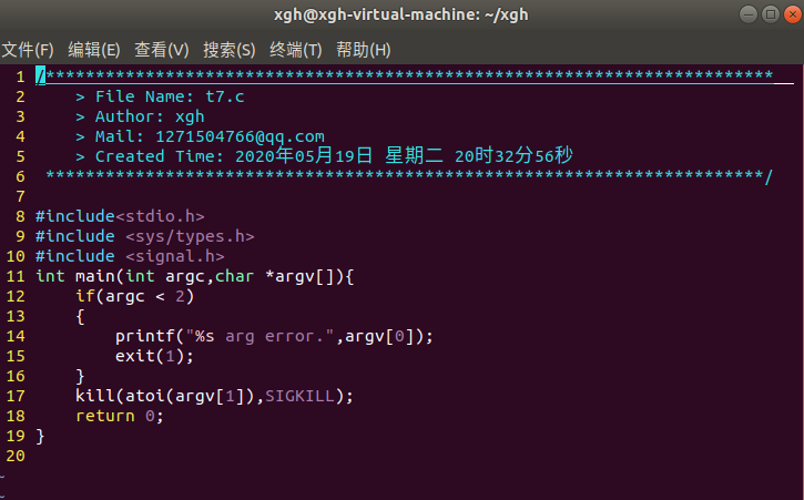 - 我们编写一个简单的程序,该程序调用 kill() 函数向某个进程发送信号