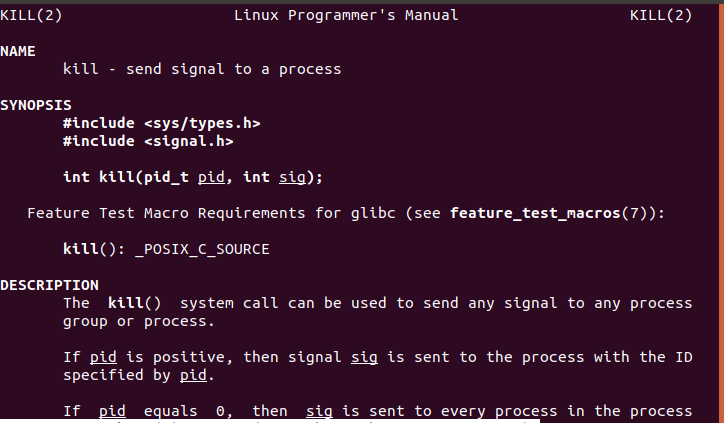 我们可以查看手册看看 kill() 函数: man 2 kill