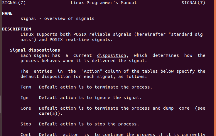 通常进程在接收到某种信号后,会根据不同的信号执行默认的操作: