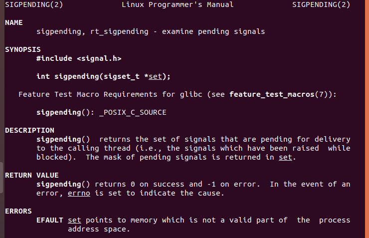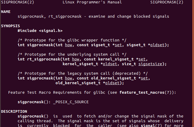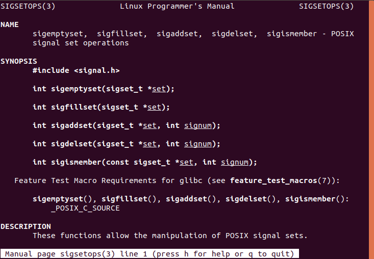 我们可以通过命令 man 3 sigsetops 来查看手册: