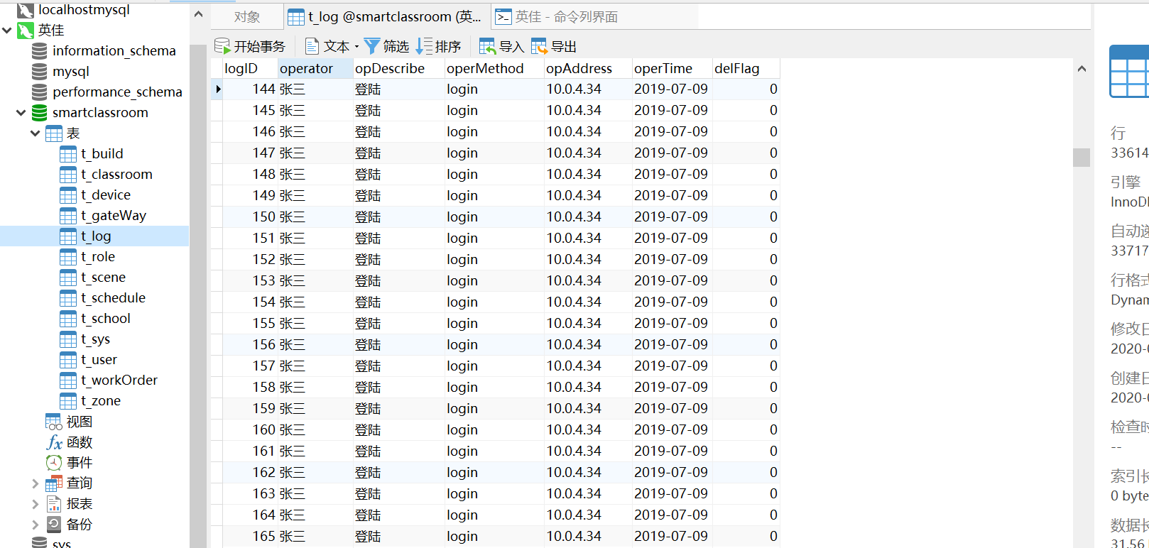日志表的截图: