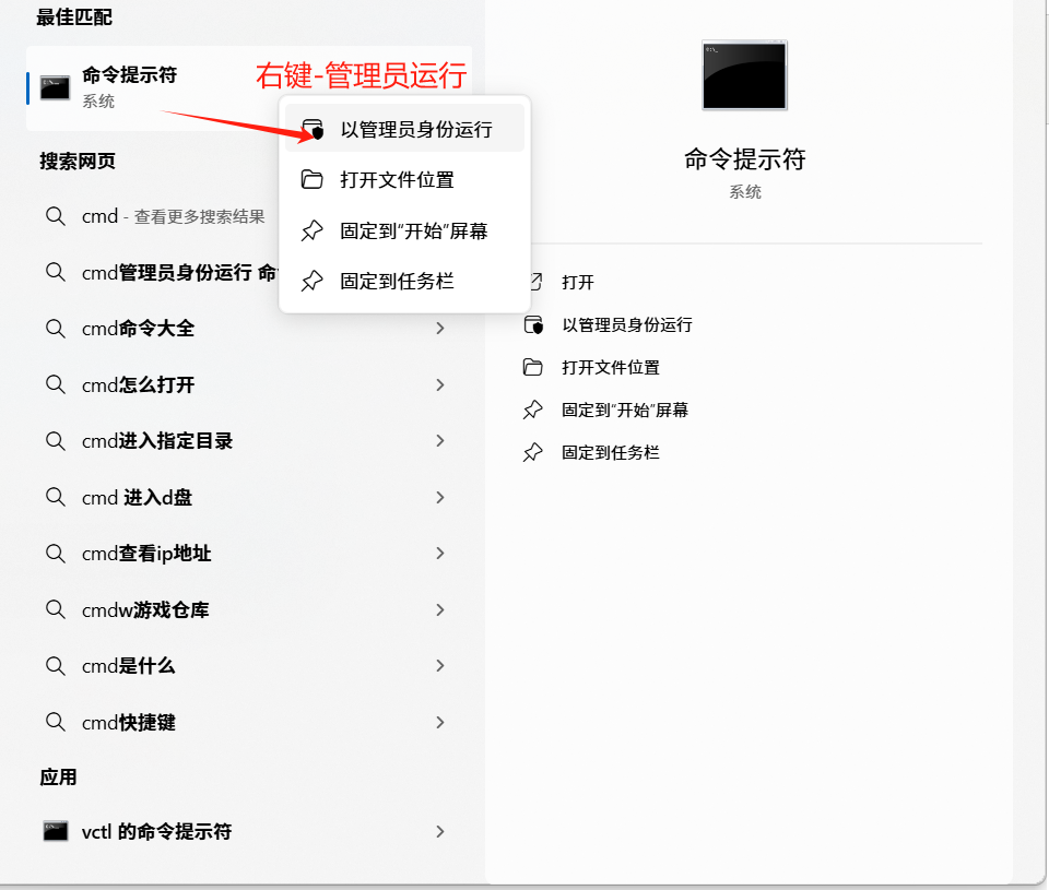 解决方法:1、使用cmd命令行,用管理员权限打开