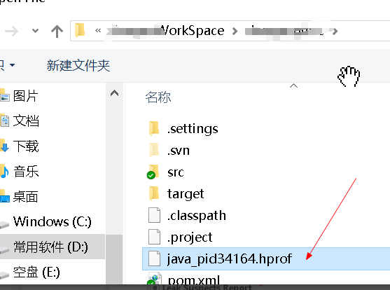 从上面的日志输出可以看到堆转储快照文件为java_pid34164.hprof