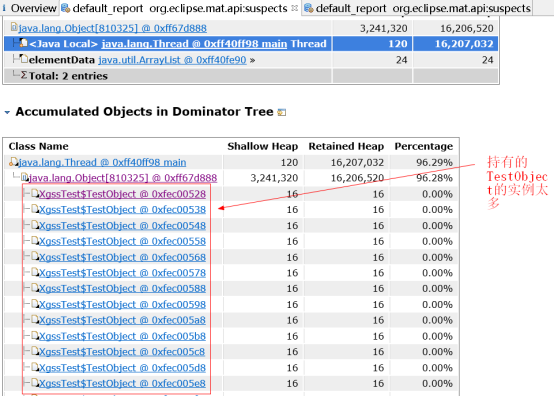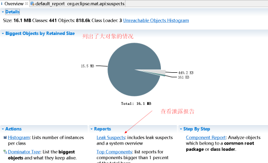 Leak Suspects 通过MA自动分析泄漏的原因。