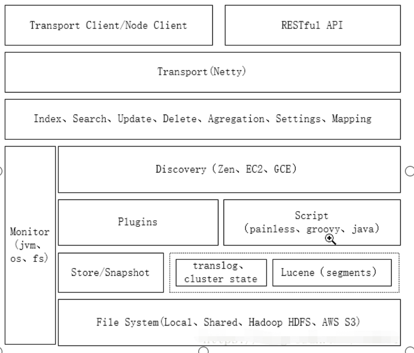 analysis:主要负责词法分析及语言处理,也就是我们常说的分词,通过该模块可最终形成存储或者搜索的最小单元 Term。