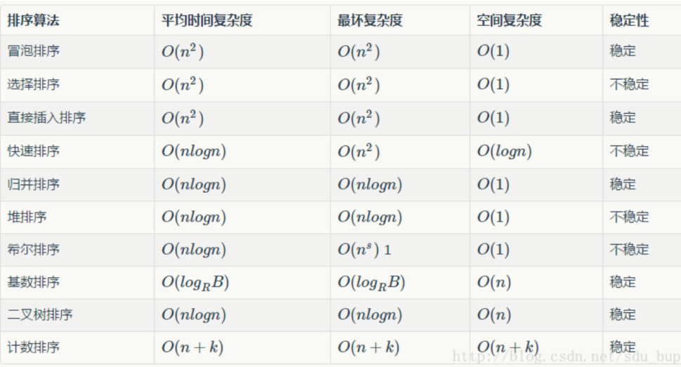 稳定的排序算法是:冒泡排序,直接插入排序,归并排序,基数排序,二叉树排序,计数排序。