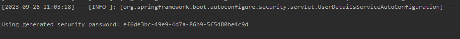 启动项目,控制台会输出生成的登录密码(如果控制台没有看到,看配置的spring的日志级别,info级别可以输出),默认的账号是user