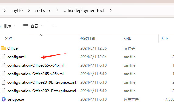 将config.xml文件放到我们之前下载的Offic软件部署工具目录