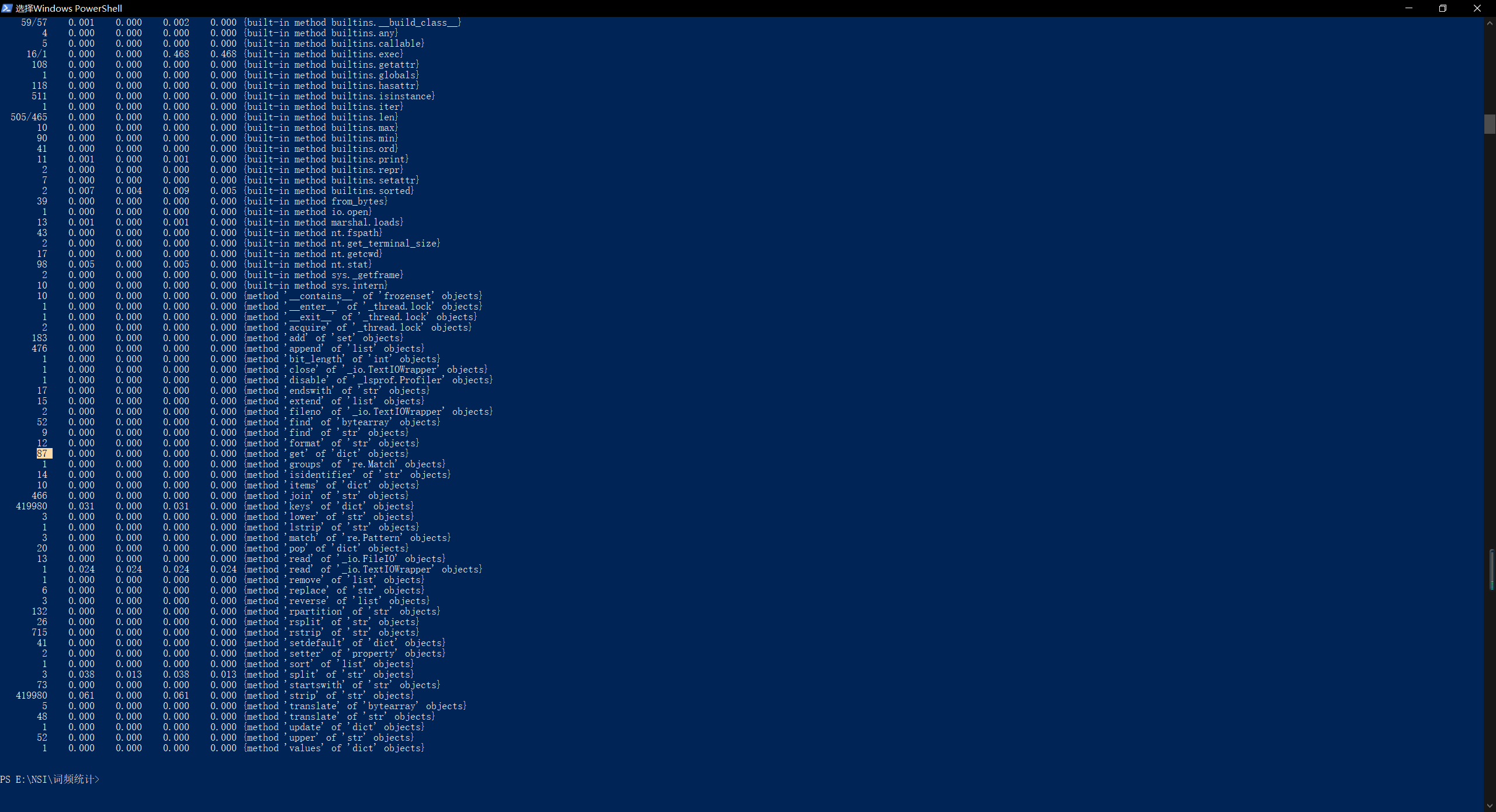 此程序让我熟悉了如何进行性能分析以及git分支管理,同时也掌握了python中的文件读取、文字切片等功能