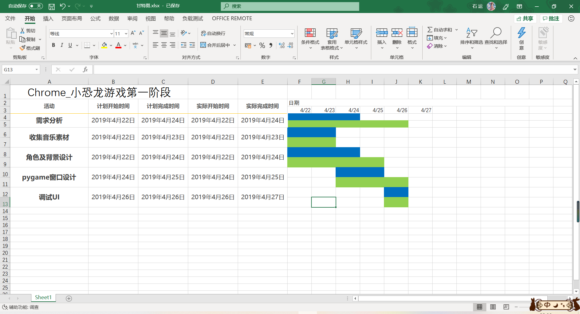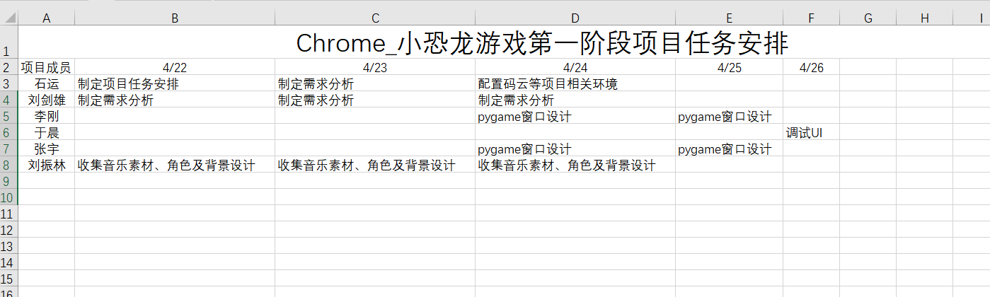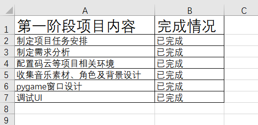 存在问题:由于项目刚刚起步,且团队成员编程水平普遍不高,所以在刚开始的第一阶段主要内容是环境搭建以及实验性运行pygame窗口,但是,由于团队成员对于码云以及团队协作等不是特别熟悉,导致最后在上传项目、合并项目时花费了大量时间,已经完成的任务迟迟不能上传到码云,虽然本地项目都在预估时间内完成,但是如果以上传码云的时间为准则是大大超出了预估时间,严重拖慢了项目进度。。