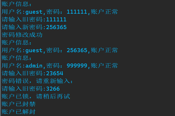 print(f'用户名:{self._name},密码:{self._password},账户正常')