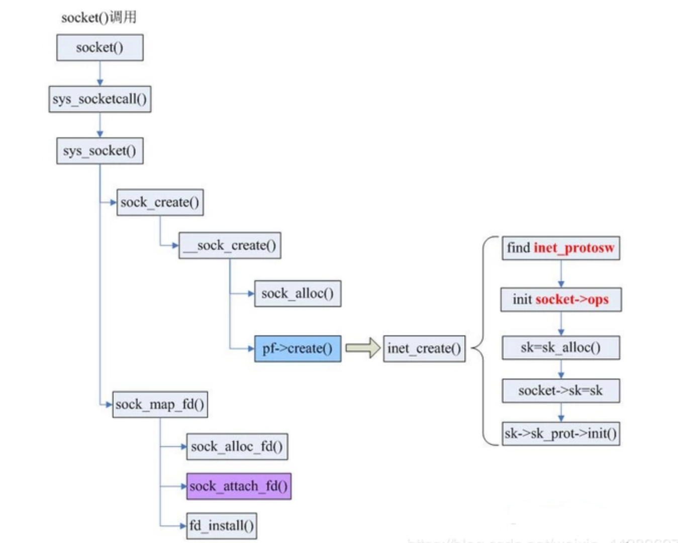 socket()调用过程如下: