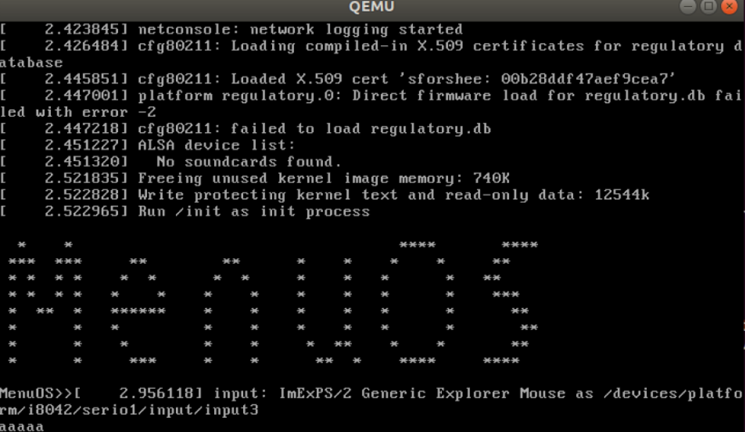 cd .. qemu-system-i386 -kernel linux-5.0.1/arch/x86/boot/bzImage -initrd rootfs.img # make i386_defconfig qemu-system-x86_64 -kernel linux-5.0.1/arch/x86_64/boot/bzImage -initrd rootfs.img