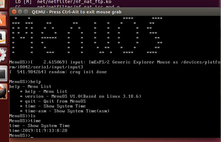 git clone https://github.com/mengning/menu.git cd menu sudo apt-get install libc6-dev-i386 # 在64位环境下编译32位需安装 make rootfs cd .. qemu-system-i386 -kernel linux-5.0.1/arch/x86/boot/bzImage -initrd rootfs.img # make i386_defconfig qemu-system-x86_64 -kernel linux-5.0.1/arch/x86_64/boot/bzImage -initrd rootfs.img