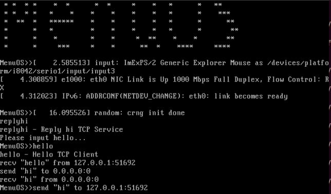 由于我们已经在menu os中集成了replyhi和hello两个程序,这两个通信程序就使用了socket()API,如下图: