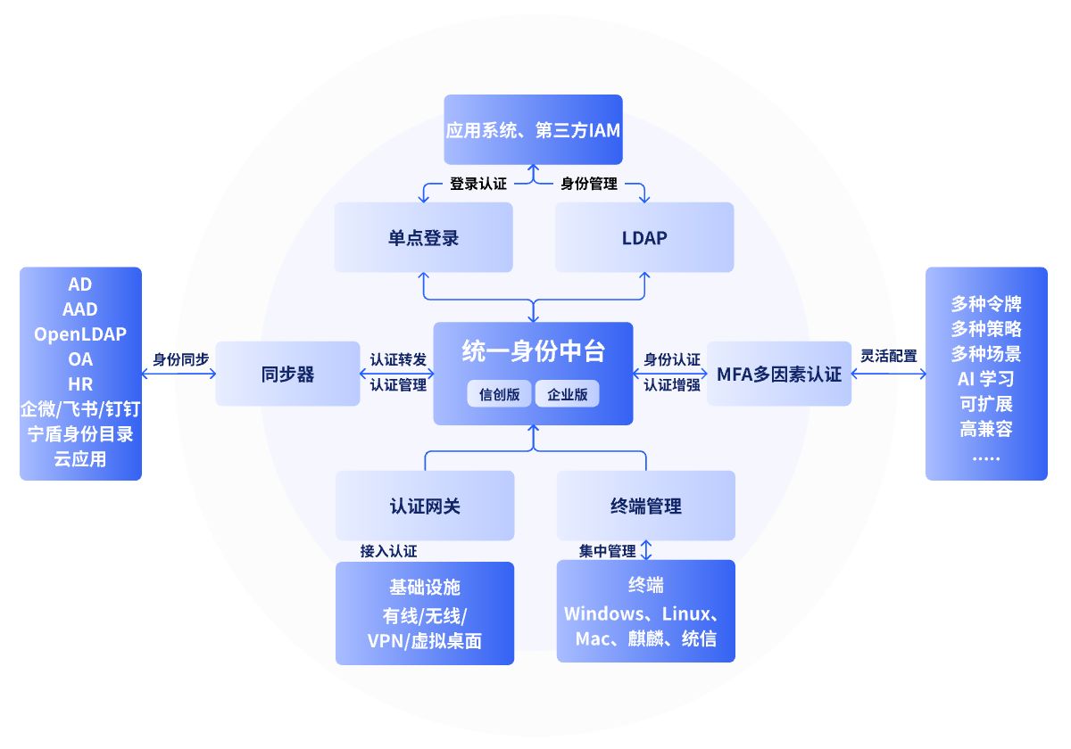 I²M,全称Integrated Identity Management,即统一身份中台。I²M是一个连接各种身份认证和访问管理系统的中间件平台,旨在实现不同身份管理系统之间的集成和互通。通过统一身份中台的全栈协议,企业可以将分散在各个系统(设备、应用、网络、终端)中的身份信息进行整合,实现真正的统一身份管理,用一个账号密码登录所有应用、设备、网络、终端,方便企业进行统一管控和审计。