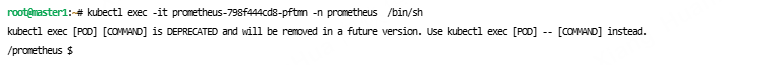 使用命令:kubectl exec -it prometheus-798f444cd8-pftmn -n prometheus /bin/sh
