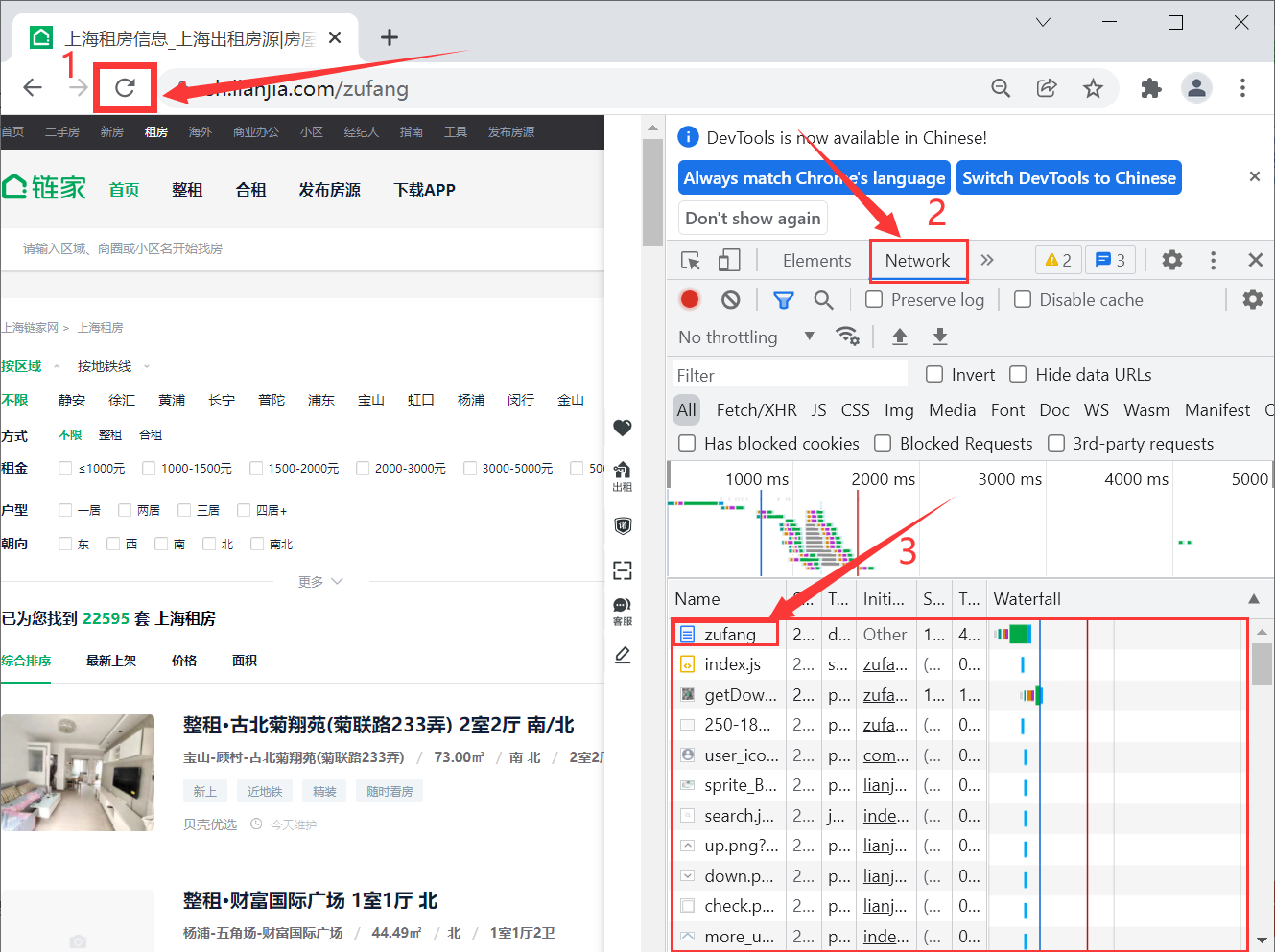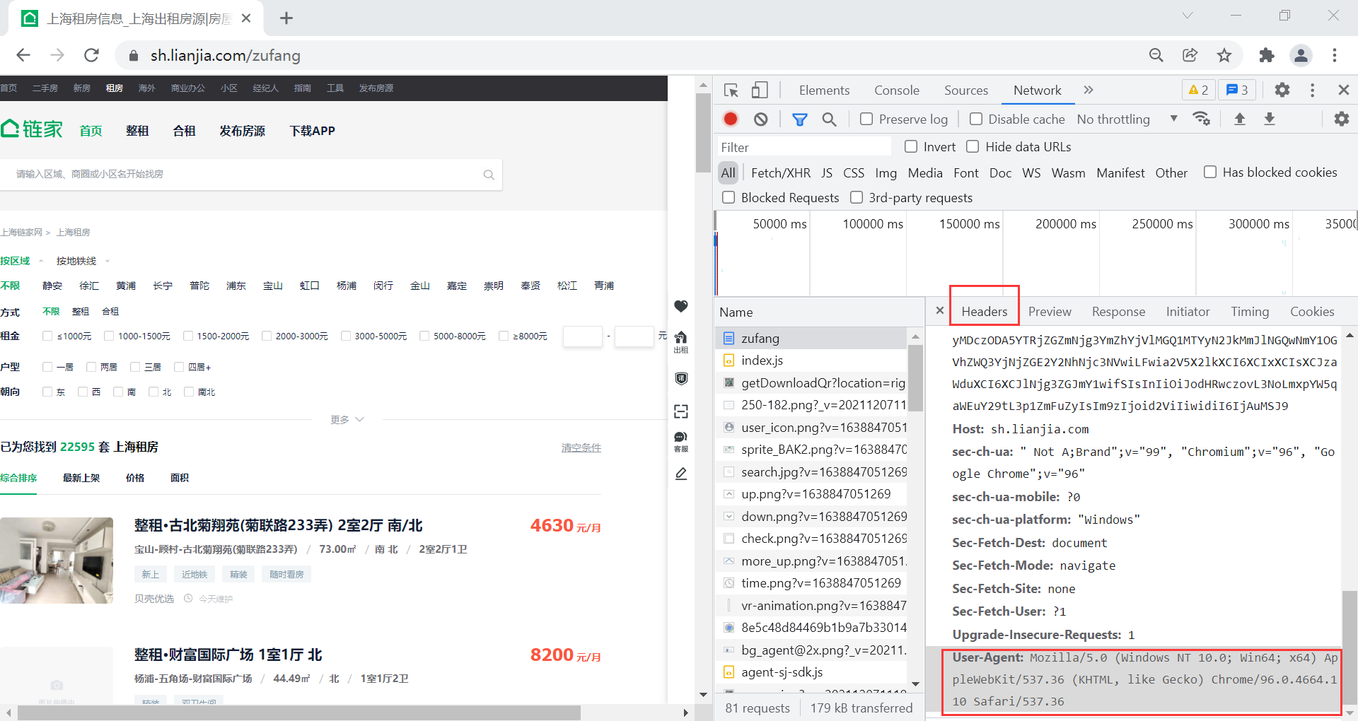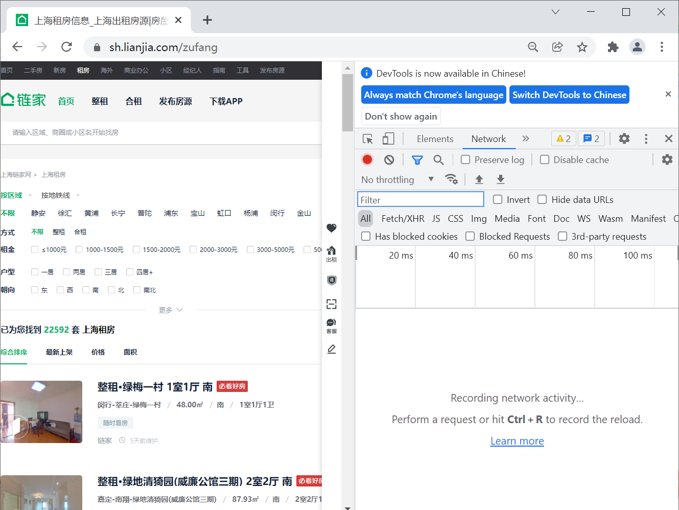 # 伪装爬虫,伪装成浏览器进行访问 headers = { 'User-Agent': 'Mozilla/5.0(Windows NT 6.1; WOW64) AppleWebKit / 537.36(KHTML, like Gecko) ' } # 定义网页 url = 'https://sh.lianjia.com/zufang' # 使用requests.get()方法获取响应 # 其中第二个参数:headers= 等号右边的变量是你上面所定义好的headers res = requests.get(url, headers=headers) # 用于解决etree.HTML解析异常 html = etree.HTML(res.text)