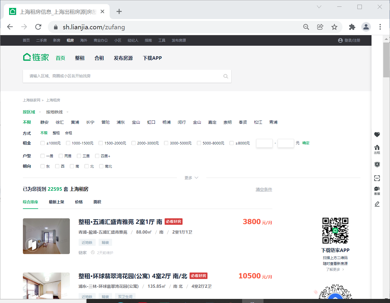 基于Python网络爬虫爬取链家上海租房信息进行数据分析与可视化