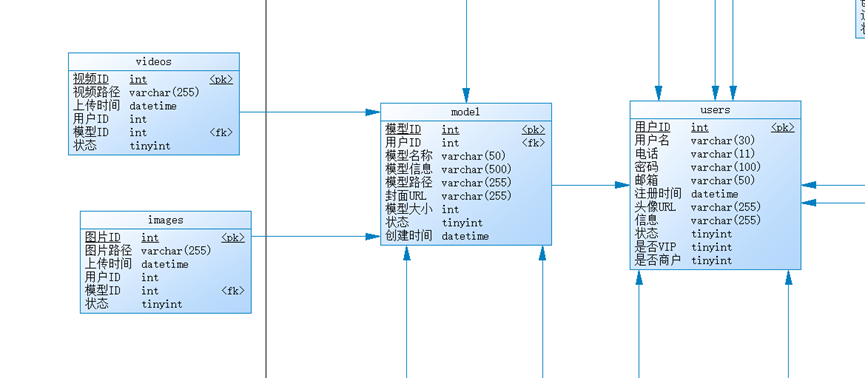 我们的数据库设计是关于基于手机拍照的三维重建系统的设计。它简要介绍了数据库的表、字段及其表之间的关系。这个系统的背景意义在于,随着技术的进步和数字化时代的来临,三维建模在各种行业中的应用逐渐增多,我们可以通过手机拍照技术,可以快速地对物体进行三维建模,为各种应用场景提供便利。例如,在工业设计、游戏开发、虚拟现实等领域,都可以利用这种技术来快速创建三维模型。而这个数据库设计则为实现这一目标提供了数据结构和关系的基础。