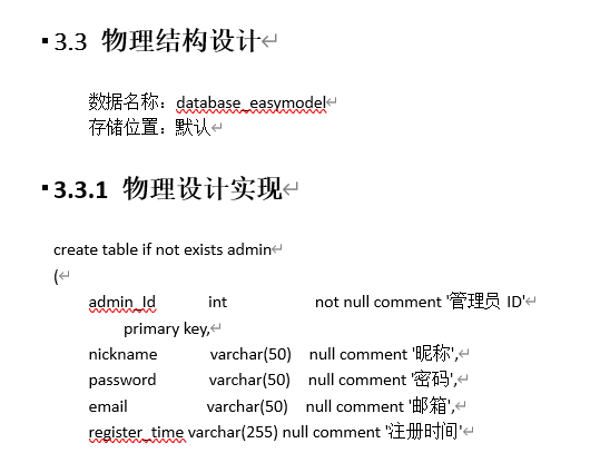 物理结构设计是数据库设计的最后阶段,它涉及到数据库的存储结构和索引的设计。我们根据逻辑结构设计的结果,选择了合适的存储引擎和文件格式,并创建了适当的索引来提高查询性能。此外,我们还考虑了备份和恢复策略,以确保数据库的安全性和可靠性。
