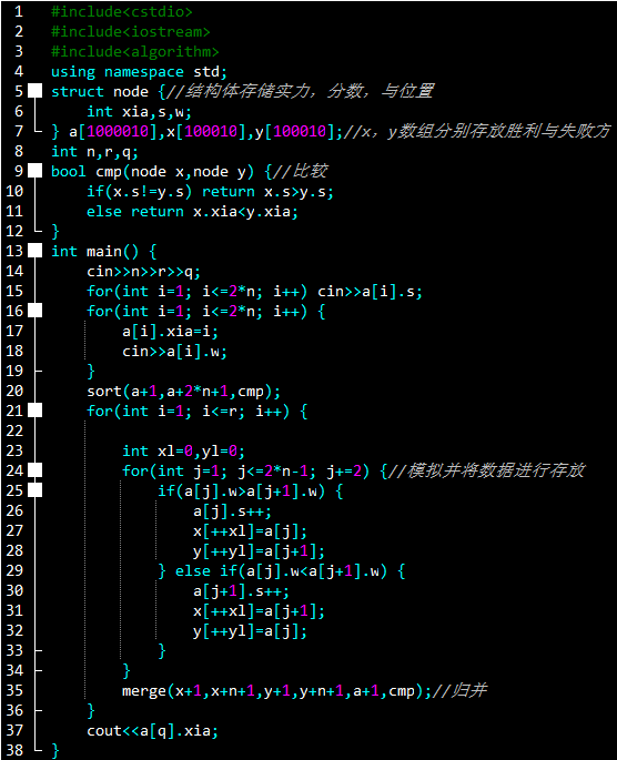 试题分析:这道题目考察的是排序与模拟,题目要求明确,我们只需要模拟出来即可,我们需要对分数进行排序,而sort的时间复杂度为o(logn),所以会超时,所以我们选择归并,归并的时间复杂度为o(n),这里我用了<algorithm>中自带的merge函数。