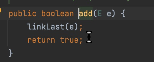 很好理解吧,add就是将末尾节点的next 指向新元素。末尾为空,就讲头节点设置为新元素
