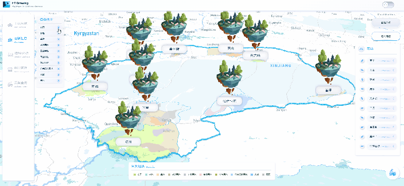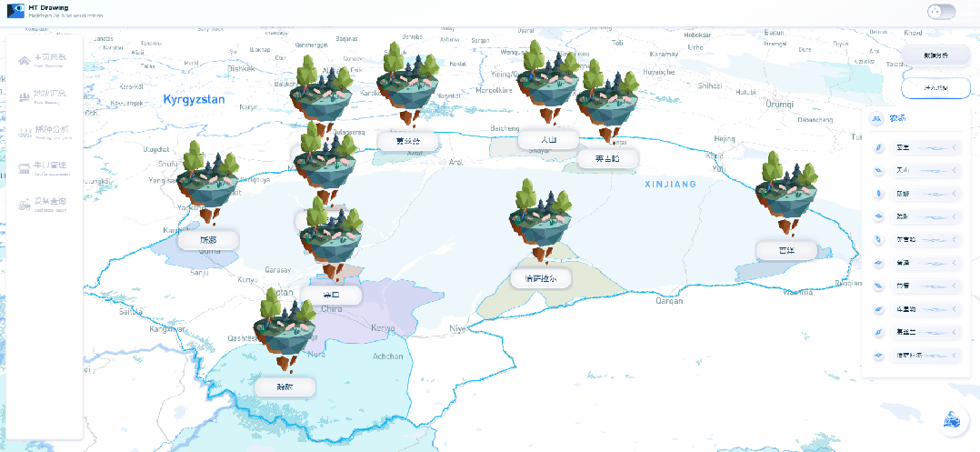 图扑软件利用自研 HT for Web GIS 产品,结合遥感技术,构建可交互式的农林牧数据分析平台。该平台围绕地块总览、播种分析、牛只管理、设备查询四个维度,对地区的全貌、农场、村集体分布以及相应的环境进行多样化的可视化展示和进行数据支持,还可对播种和管理提供实用的参考信息。化“数”为“物”,通过整合农业项目和业务系统数据,实现了合理利用农业资源、降低生产成本、改善生态环境以及提高农作物产品和质量的目标。