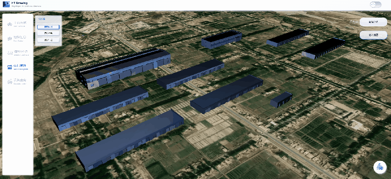 点击进入地图模块展示整个区域内 10 个农场下属村集体的地理位置。点击农场的名称按钮可以拉近镜头,近距离展示该农场所包含的村集体信息。3D 场景和 GIS 图层融合展现,可以自由切换,适用于不同的业务场景。