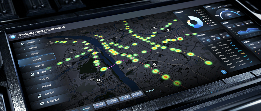 图扑软件应用自主研发核心产品 HT for Web GIS,实现可交互的 Web 城市轨道交通线网可视化管理运维平台,将其 GIS 的数据进行丰富的可视化展示。