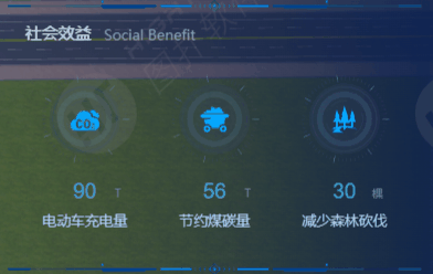 新能源园区使绿色再生能源得到循环使用,等效节约了煤炭消耗量与森林砍伐量,同时也给充电系统供能。