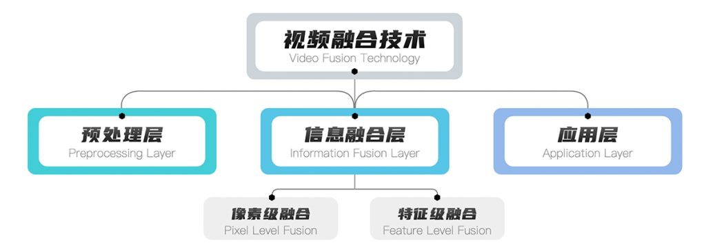视频融合技术一般可以分为三个层次:预处理、信息融合与应用层。